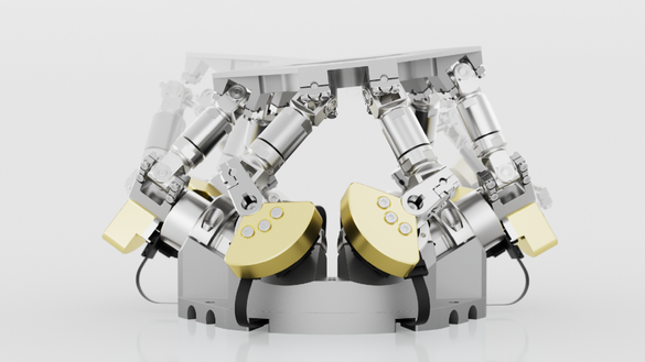 Two more variants are currently under development, and one system has been extensively qualified: a variant with stepper motors for space applications, a variant with a piezo drive for low-temperature applications, and a variant for industrial applications. Furthermore, our development team is working on an integrated safety brake to ensure system safety even in the event of a power supply failure. In the future, our lever hexapods will be suitable for a wide range of applications, such as alignment and packaging in photonics. Due to direct power transmission and improved heat dissipation, they are ideally suited for use in cleanrooms and vacuum environments.