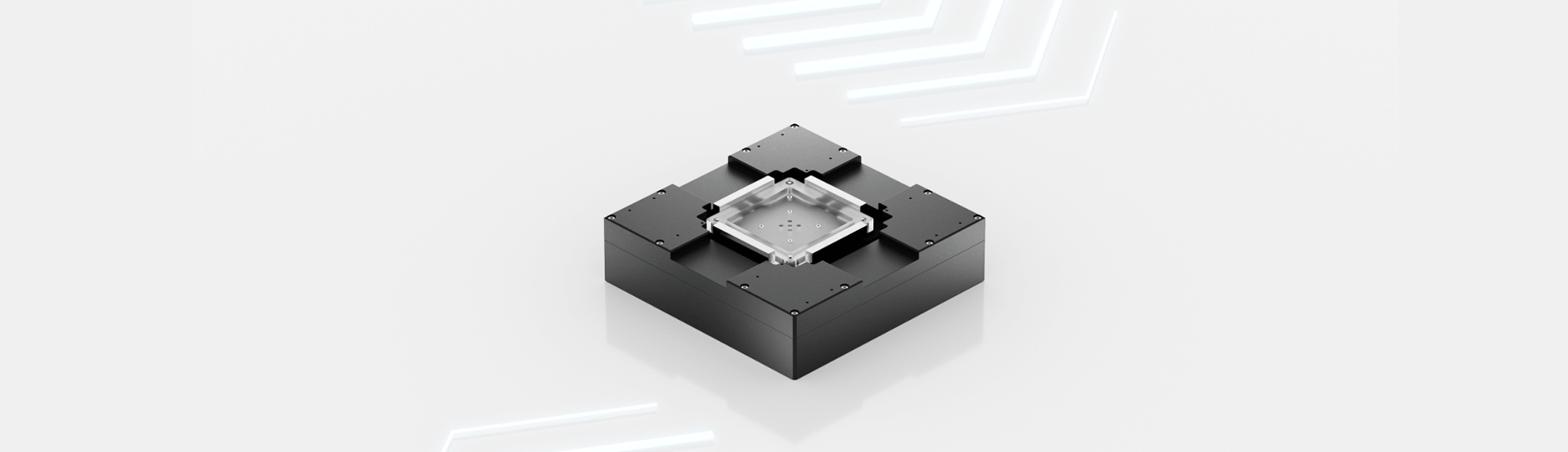 The active control in six degrees of freedom makes it possible to set guide characteristics in all directions. Motion can be freely defined directly in the positioning system, including correction functions such as focusing or tilt adjustment.