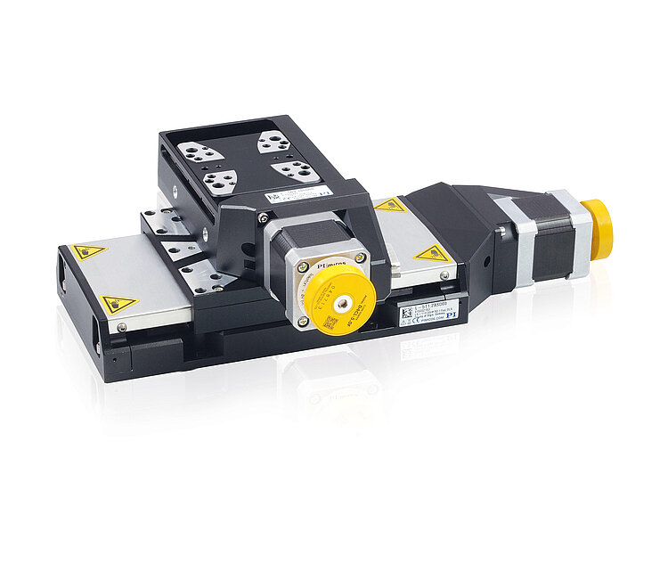 High-precision linear stage; 2-phase stepper motor; 102 mm travel range; 500 N load capacity; 45 mm/s maximum velocity; ball screw; incremental linear encoder, 5 nm sensor resolution, sin/cos, 1 V peak-peak