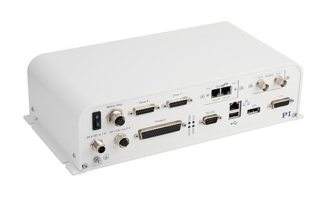 As unique as the hexapod mechanics, the motion controller is designed to make parallel kinematics algorithms as easy and unnoticed by the user as possible: All target positions are commanded in Cartesian coordinates. For best integration in automation processes, the Hexapod motion controller is available with industrial EtherCAT interface.