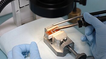 PI Ceramic integrates piezo ceramics into the customer’s product. This includes the electrical contacting of the elements according to customer requirements and the mounting of components provided by the customer, as well as the gluing or the casting of the piezo ceramics. PICMA® multilayer actuators may be integrated, for example, in the customers' own guiding mechanisms and mechanical levers.