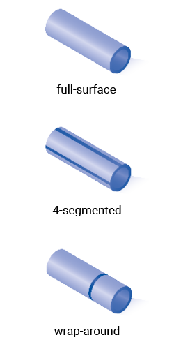 Electrode designsIn addition to multi-segmented tubes, other designs are possible, such as full-surface, 4‑segmented or wrap‑around. See right column.