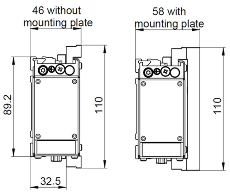 Narrower, thus recommended when the installation space is limited in width