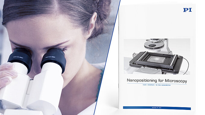 One of the most common application in Light Sheet Microcopy is the creation of Z stacks with which the sample can be wholly depicted in three dimensions. For this purpose, the sample is moved in the Z direction (that is, along the optical axis of the objective lens). For this task, PI contributes compact linear stages of the L-505 type. These very compact linear stages have a folded drivetrain, DC motors with gearhead, linear encoders, and offer 26 mm travel range at a bidirectional repeatability of ±250 nm. The stage also excels by a high stiffness and guiding accuracy due to ball guides.