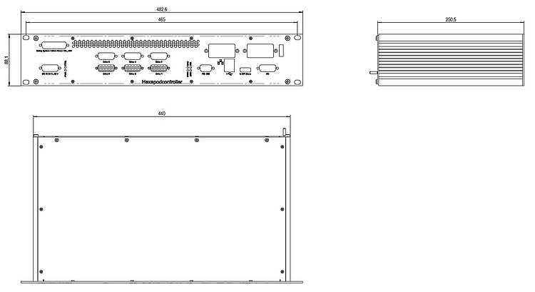 The delivery includes the controller, a software package, and a power adapter for the power supply. It is recommended to order the hexapod mechanics and a suitable hexapod cable set together with the controller so that the components can be matched before delivery. To be provided by the customer if required: