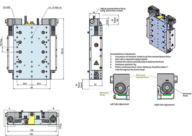 V-571.Z vertical translation stages are designed for accuracy, precision, long life, ease of use. Due to the user-adjustable magnetic counterbalance they can be operated in vertical orientation ensuring minimal current on the linear motor and enhanced dynamic performance.