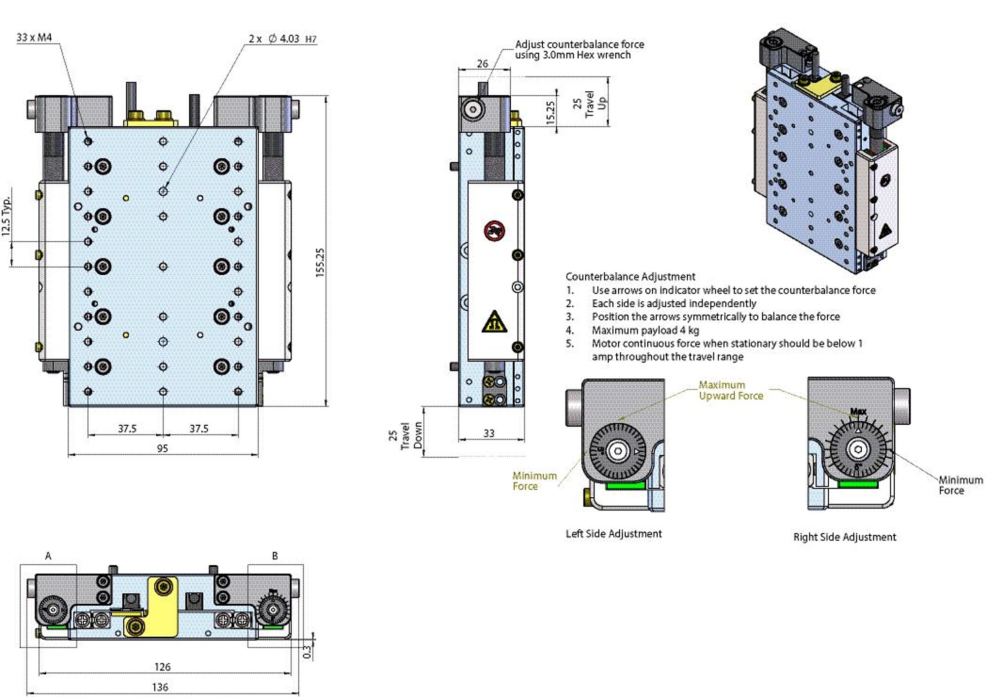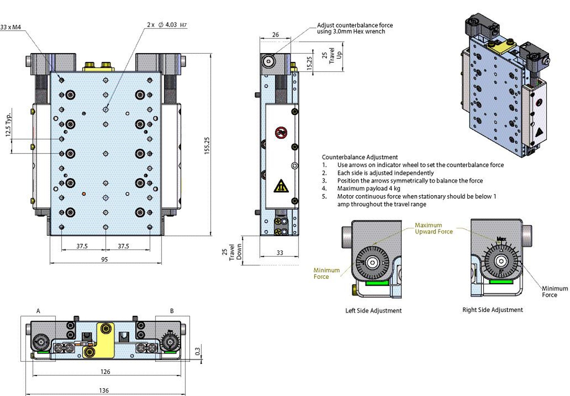 | Moved mass in Z, unloaded | 400 g | 400 g | 500 g | 500 g | |