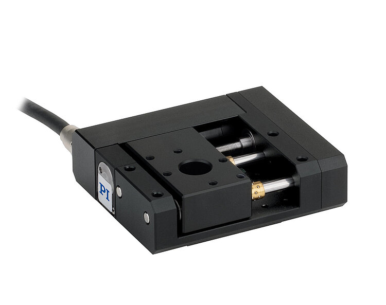 Compact linear stage; DC gear motor; 25 mm travel range, 20 N load capacity, 2 mm/s maximum velocity; ball screw; incremental rotary encoder, 2048 cts./rev. resolution; 0.5 cable length
