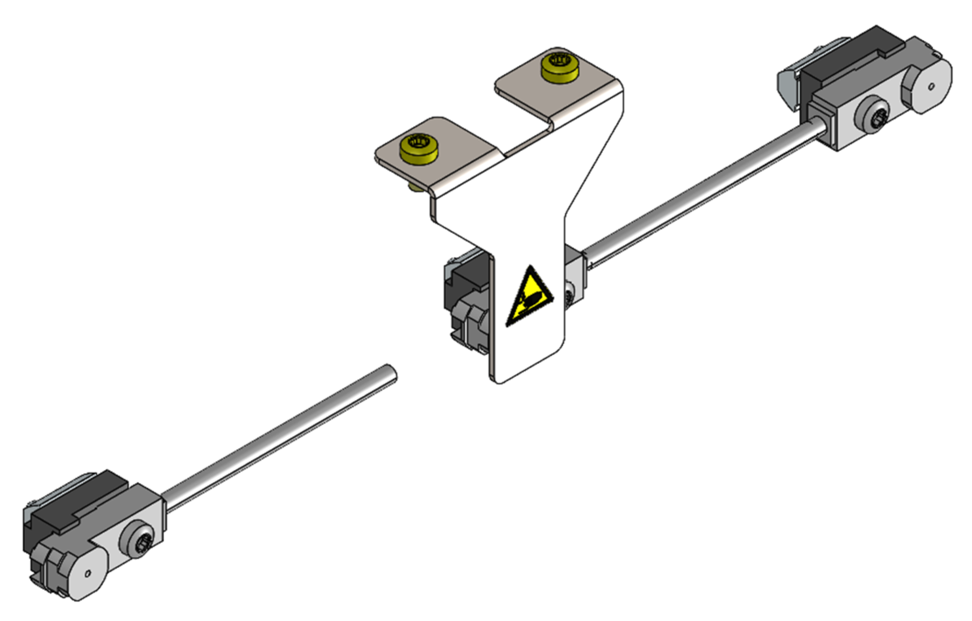 The clamping claw mounting kit can be used for all configuration variants of the stage. It serves to mount the axis in the application environment. The clamping claws are inserted into the lateral slot and attached to the surface with screws. The screws are included with the clamping claws in various lengths.