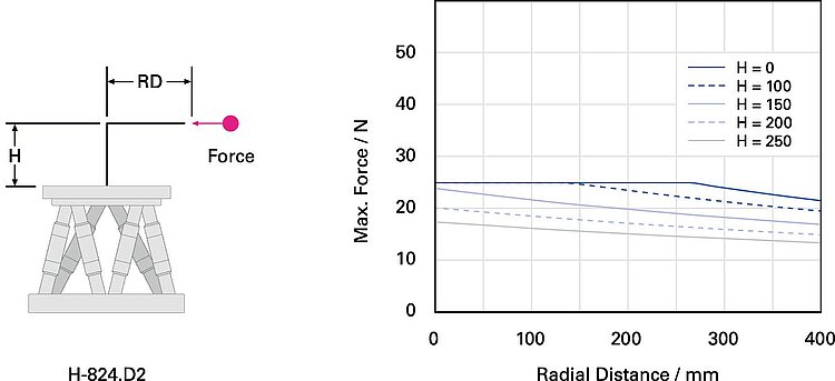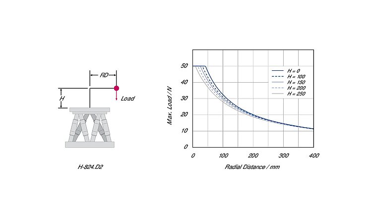 Compact hexapod; direct drive; 5 kg payload; 25 mm/s maximum velocity; D-sub connector. Connecting cables are not included in the scope of delivery and must be ordered separately.