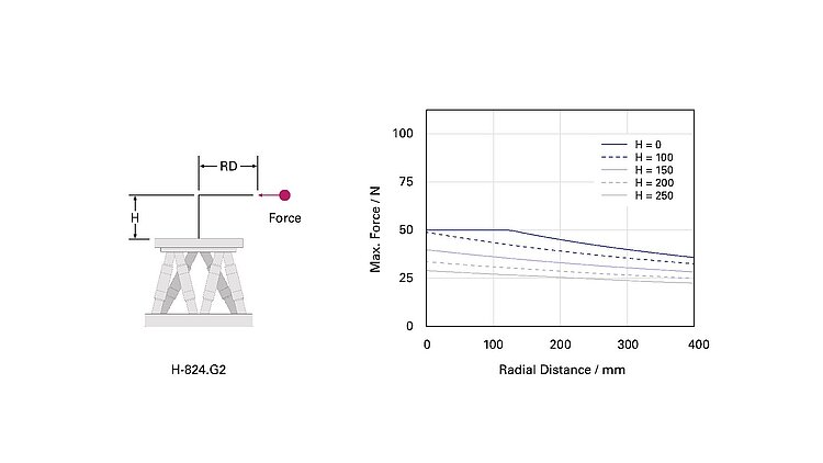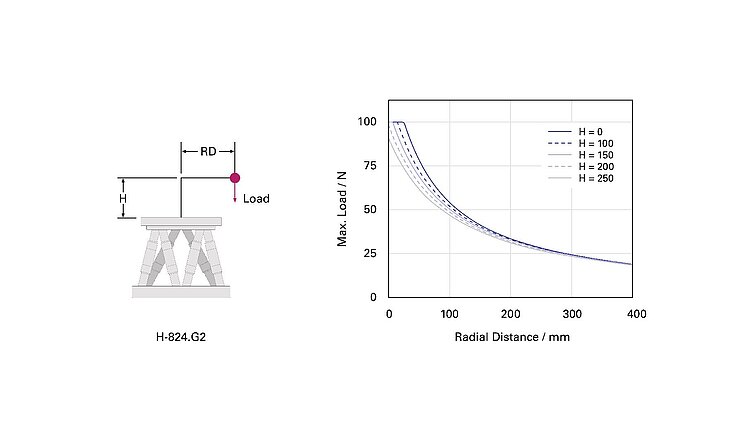 The simulation software simulates the limits of the workspace and payload of a hexapod. Therefore, even before purchasing, you can check whether a particular hexapod model can handle the loads, forces, and torques occurring in an application. For this purpose, the simulation tool takes the position and motion of the hexapod as well as the pivot point and several reference coordinate systems into account.