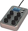 Manual control unit for hexapods, USB connector with 3 m connection cable, rotary knobs for all Cartesian axes, buttons for motion stop and referencing, position display